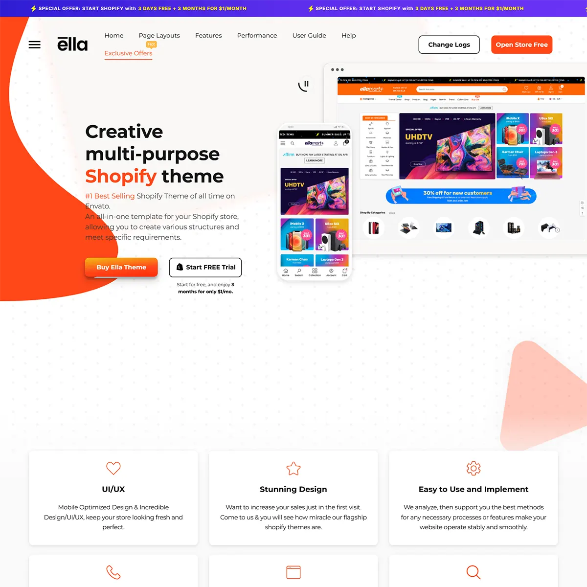 ELLA is a powerful, feature-rich, and highly customizable Shopify OS 2.0 theme designed for building responsive, modern, and professional eCommerce stores across multiple industries.